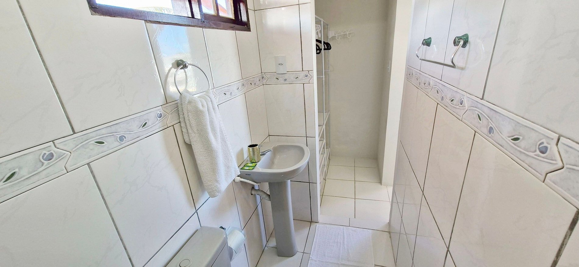 Você encontrará no local: sabonetes, toalha de rosto, piso de banheiro, papel higiênico, esponja. (A reposição destes é por conta do hóspede)