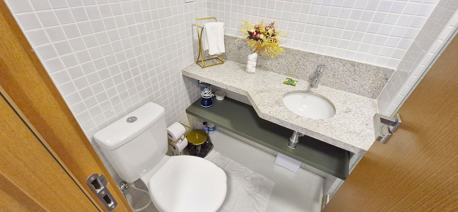• Nenhum resíduo sólido pode ser descarregado no vaso sanitário (incluindo papel higiênico), pedimos que use a lixeira fornecida. Caso contrário, o vaso sanitário pode entupir e cobramos R$ 150 para desentupi-lo.