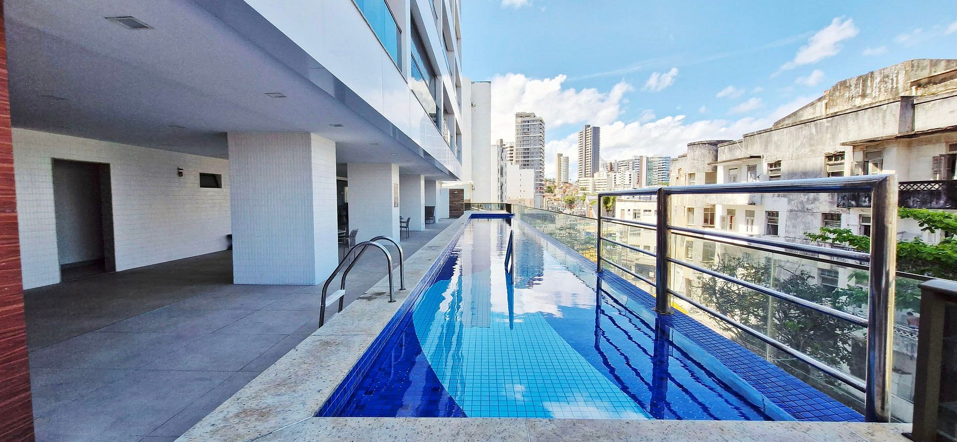 - Os hóspedes podem usufruir da piscina e da academia do prédio