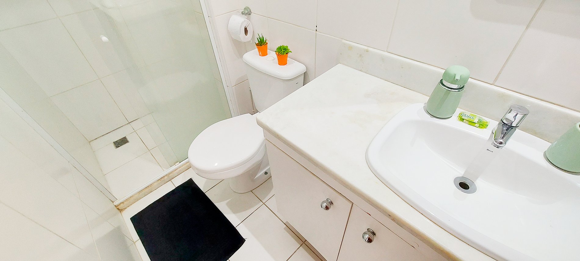 • Nenhum resíduo sólido pode ser descarregado no vaso sanitário (incluindo papel higiênico), pedimos que use a lixeira fornecida. Caso contrário, o vaso sanitário pode entupir e cobramos R$ 150 para desentupi-lo.