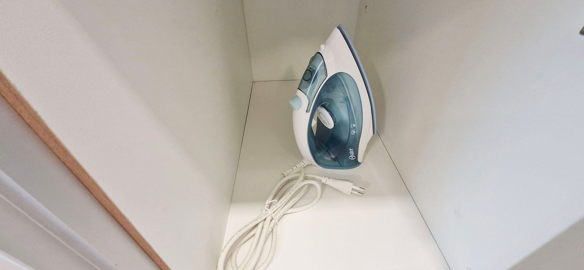 - Bancada com 4 cadeiras, geladeira duplex, cooktop de indução com 4 bocas, filtro de água, airfryer, microondas, sanduicheira, liquidificador, cafeteria elétrica, panelas, talheres, pratos e itens básicos de cozinha. Ferro de passar e cooler.