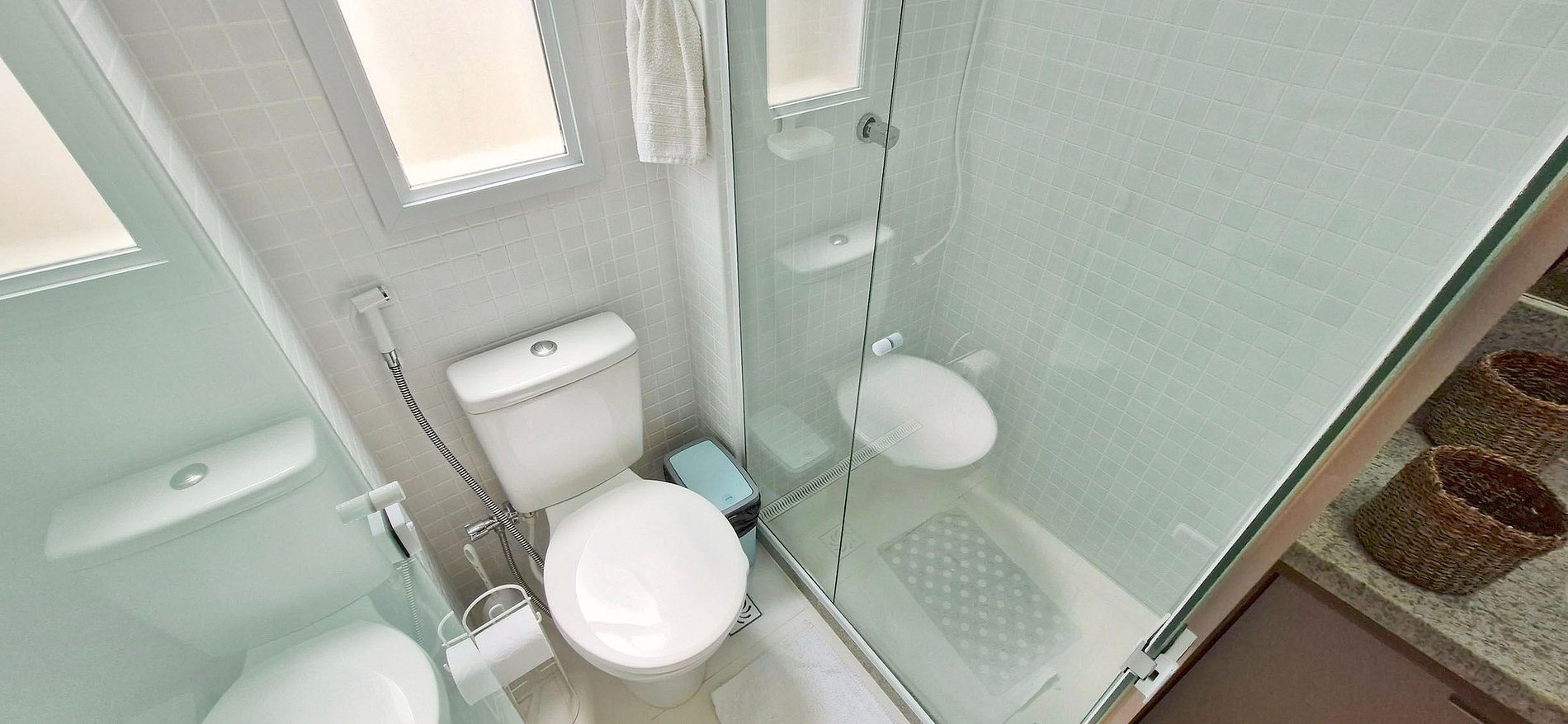 • Nenhum resíduo sólido pode ser descarregado no vaso sanitário (incluindo papel higiênico), pedimos que use a lixeira fornecida. Caso contrário, o vaso sanitário pode entupir e cobramos R$ 150 para desentupi-lo.