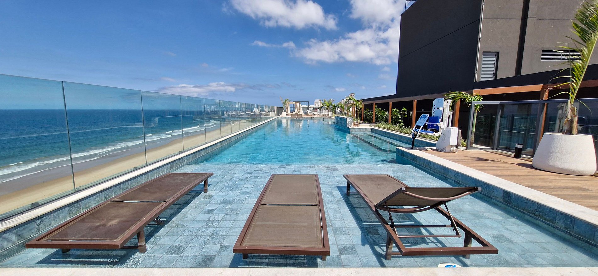 Studio em prédio de alto padrão beira-mar, com vista para a praia de Armação, próximo ao Centro de Convenções. O prédio tem piscina ao ar livre na cobertura, academia climatizada, parque infantil, sala de coworking, salão de jogos.