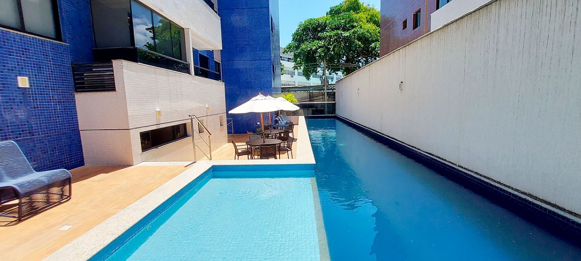 Edifício bem localizado na Ondina em rua tranquila a poucos metros da praia e do zoológico. Com piscina, academia, garagem e recepção 24hs.